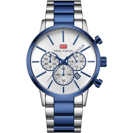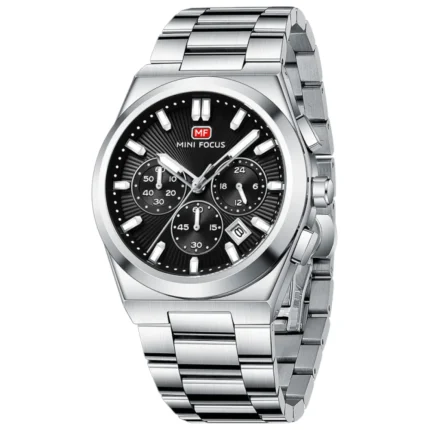 السعر الأصلي هو: 2000 EGP.1500 EGPالسعر الحالي هو: 1500 EGP.Mini Focus Silver Stainless Steel Silver Dial Chronograph Quartz Watch for Gents – MF0613G-03