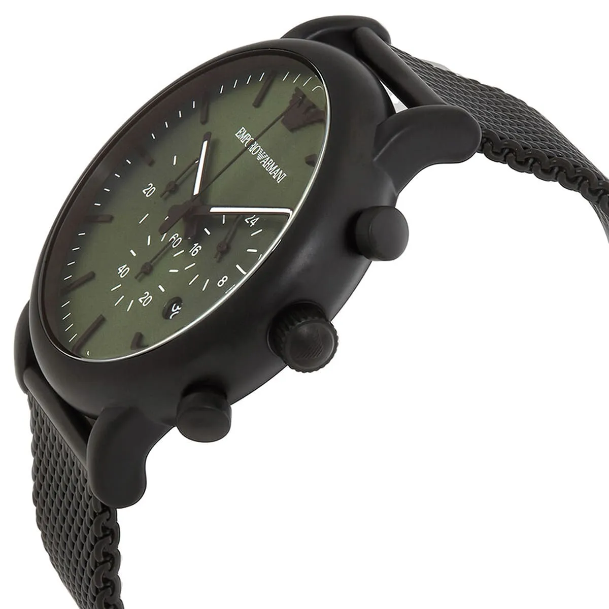 ar11470 emporio armani watch men green dial mesh stainless steel metal black strap quartz battery analog chronograph luigi 11