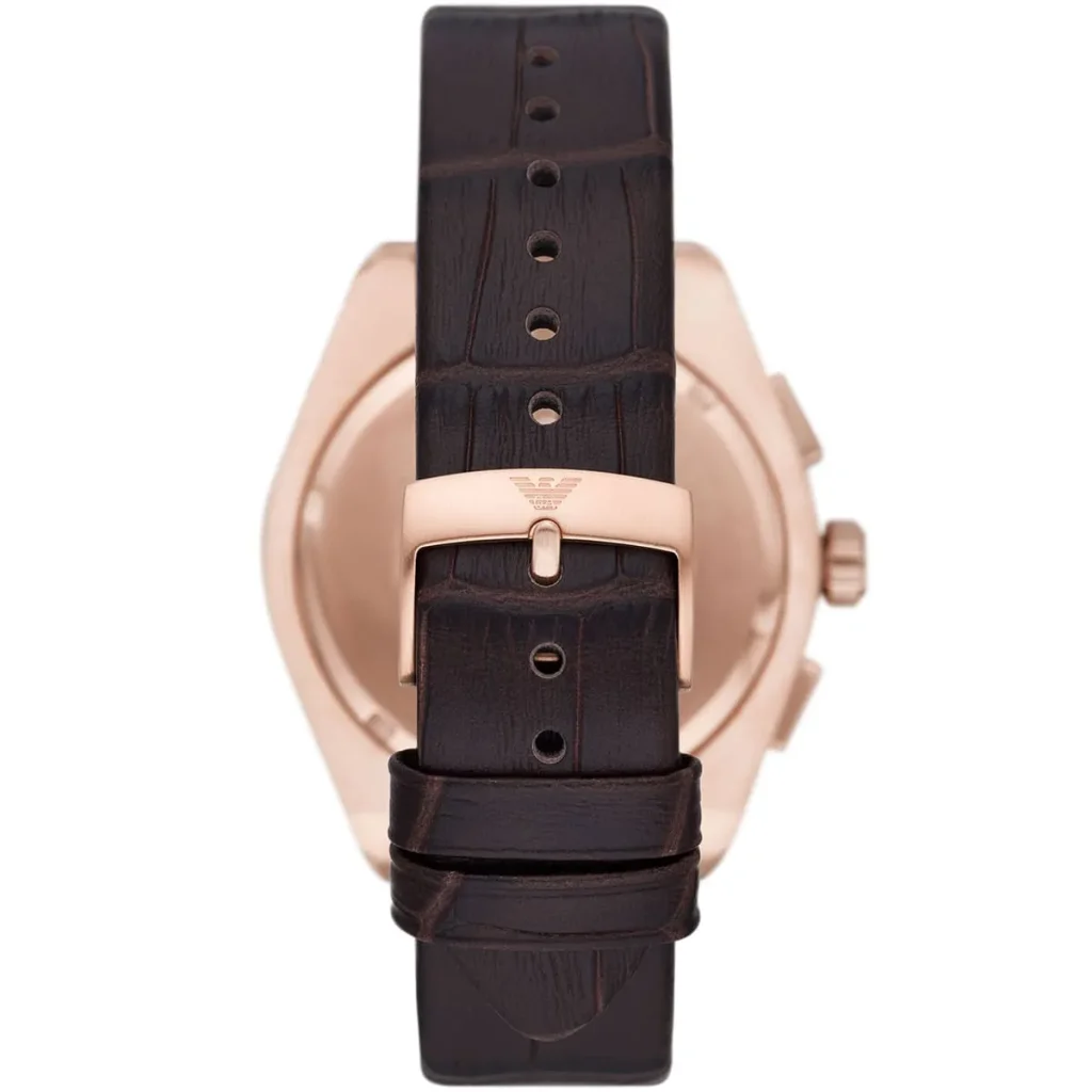 ساعة امبوريو ارماني للرجال أصلية موديل AR11563 لون ازرق و استيك جلد طبيعي لون بني.