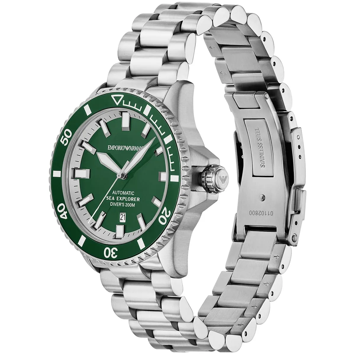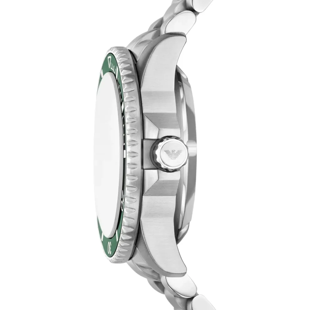 ساعة امبوريو ارماني للرجال أصلية موديل AR60088 لون اخضر و استيك معدن لون فضي.