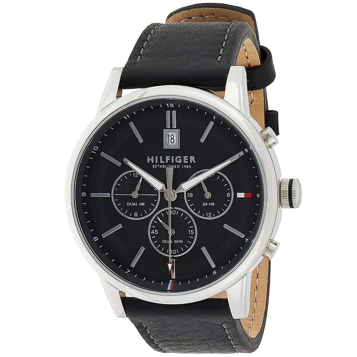 ساعة تومي هيلفيغر للرجال أصلية لون اسود و استيك جلد طبيعي لون اسود.