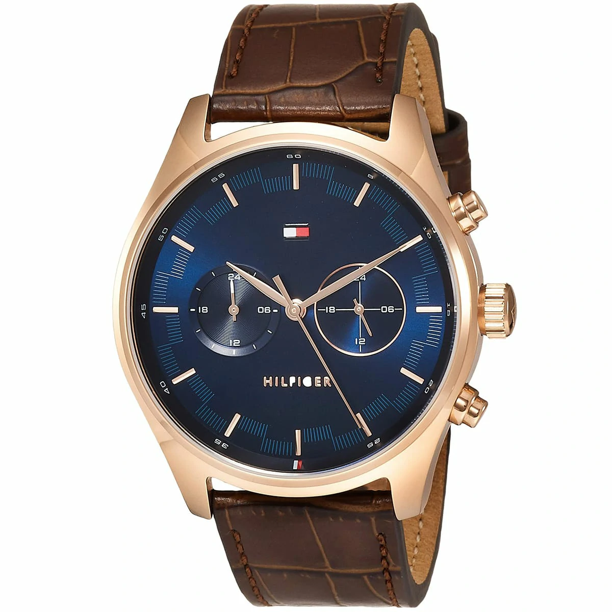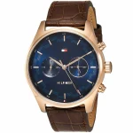 ساعة تومي هيلفيغر  للرجال أصلية موديل  لون ازرق و استيك جلد طبيعي لون بني.