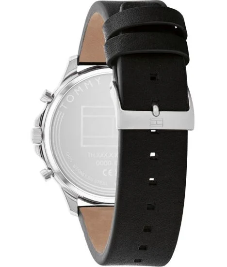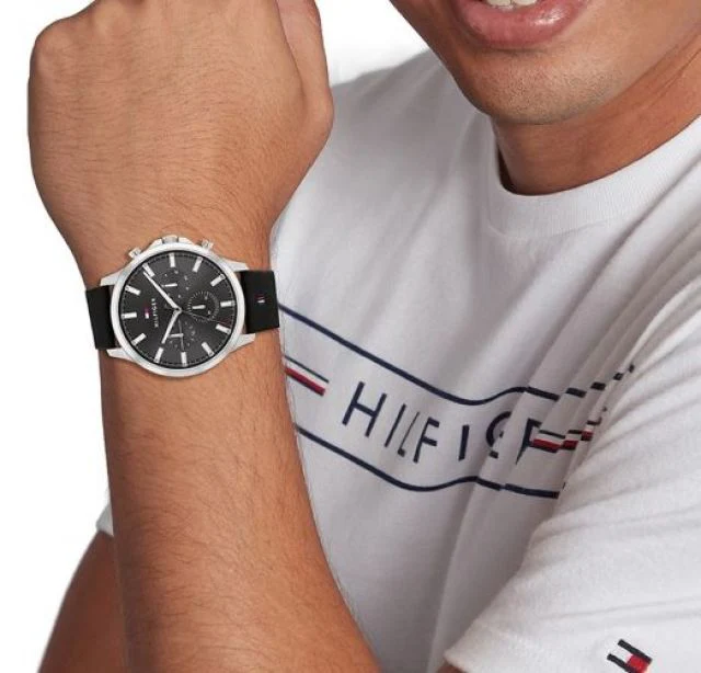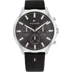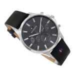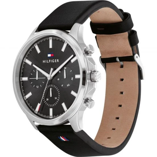 ساعة تومي هيلفيغر للرجال أصلية موديل 1710495 لون اسود و استيك جلد طبيعي لون اسود.