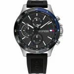ساعة تومي هيلفيغر للرجال أصلية موديل (بنك) Bank 1791724 لون اسود و استيك سيليكون مطاط لون اسود.