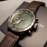 لون اخضر و استيك جلد طبيعي لون بني.