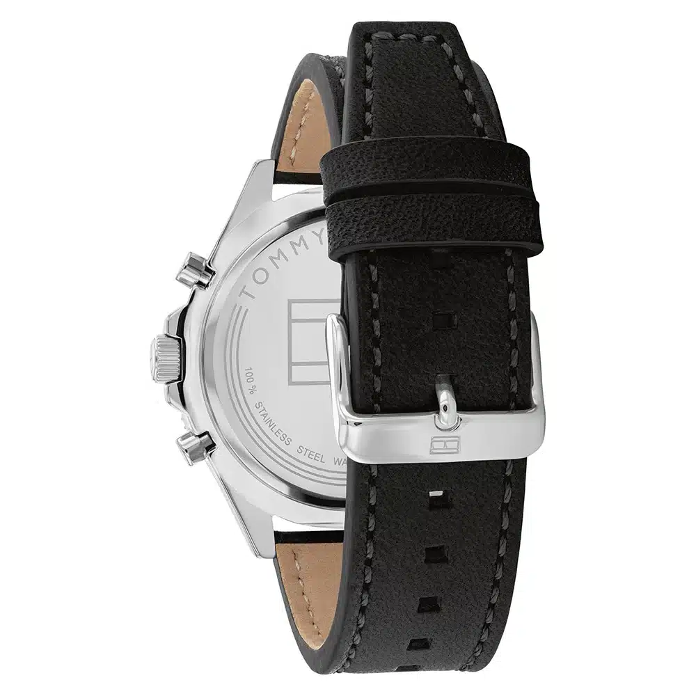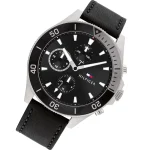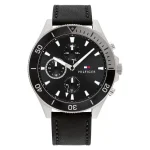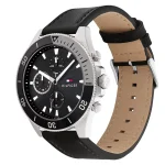 ساعة تومي هيلفيغر Tommy Hilfiger للرجال أصلية موديل (لارسون) Larson بلون اسود و استيك جلد طبيعي بلون اسود