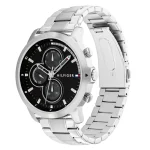 ساعة تومي هيلفيغر للرجال أصلية موديل 1792048 لون اسود و استيك معدن ستانلس لون فضي.