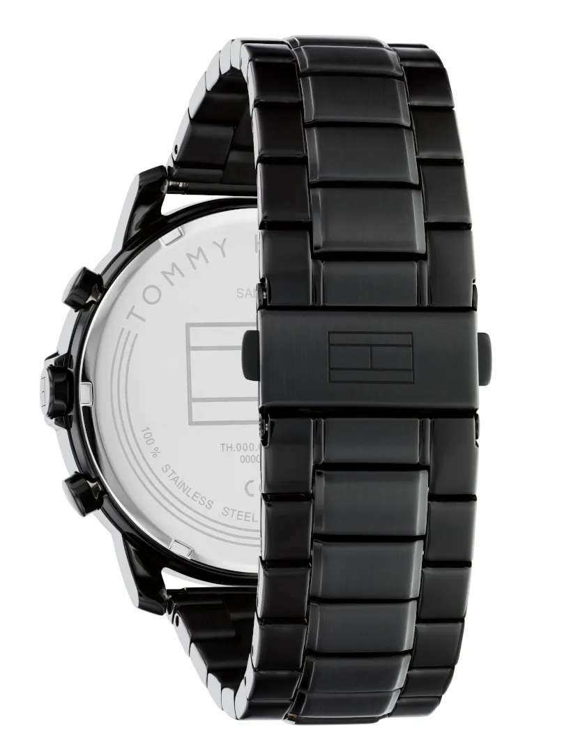 ساعة تومي هيلفيغر للرجال أصلية موديل 1792049 لون ازرق و استيك معدن ستانلس لون اسود.