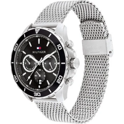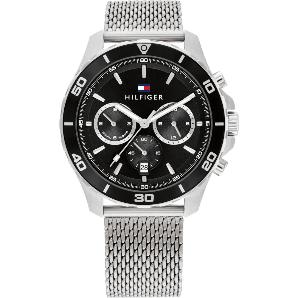ساعة تومي هيلفيغر Tommy Hilfiger للرجال أصلية موديل 1792092 لون اسود و استيك معدن ستانلس لون فضي.
