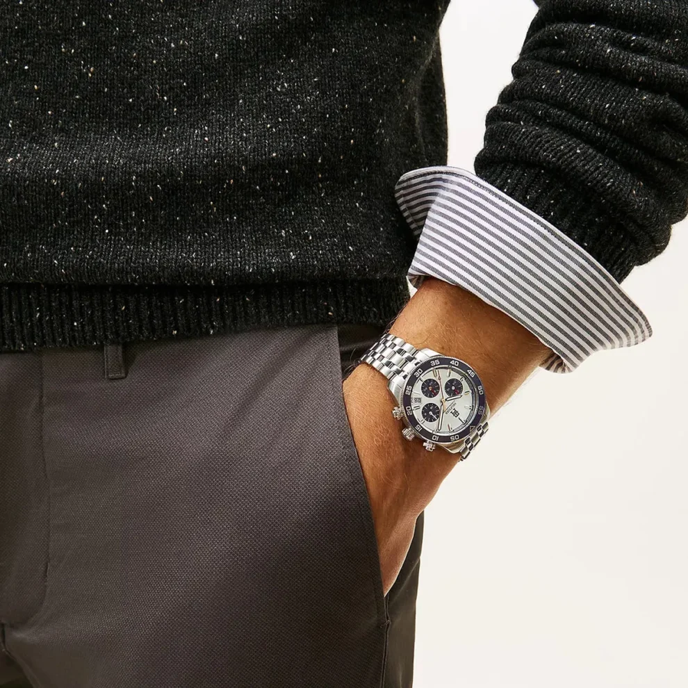 1792157 tommy hilfiger watch chronograph men white dial metal stainless steel silver strap quartz analog th85 8 990x990 1