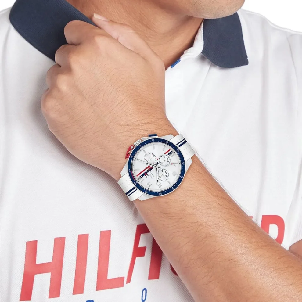 1792167 tommy hilfiger watch chronograph men white dial rubber strap quartz analog bank 3 990x990 2