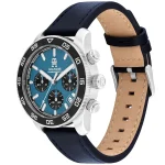 1792187 tommy hilfiger watch chronograph men blue dial leather navy strap quartz analog th85 3 990x990 1