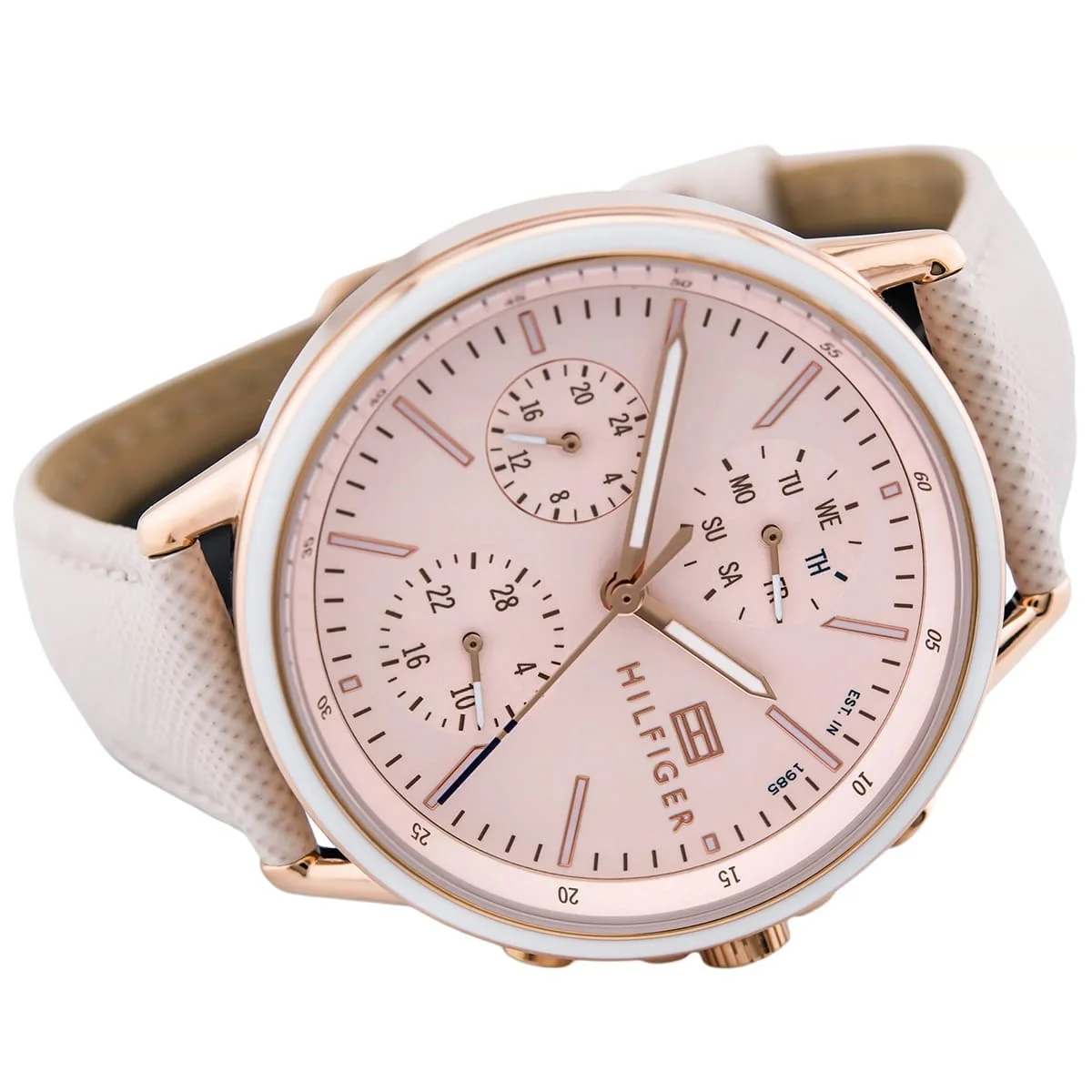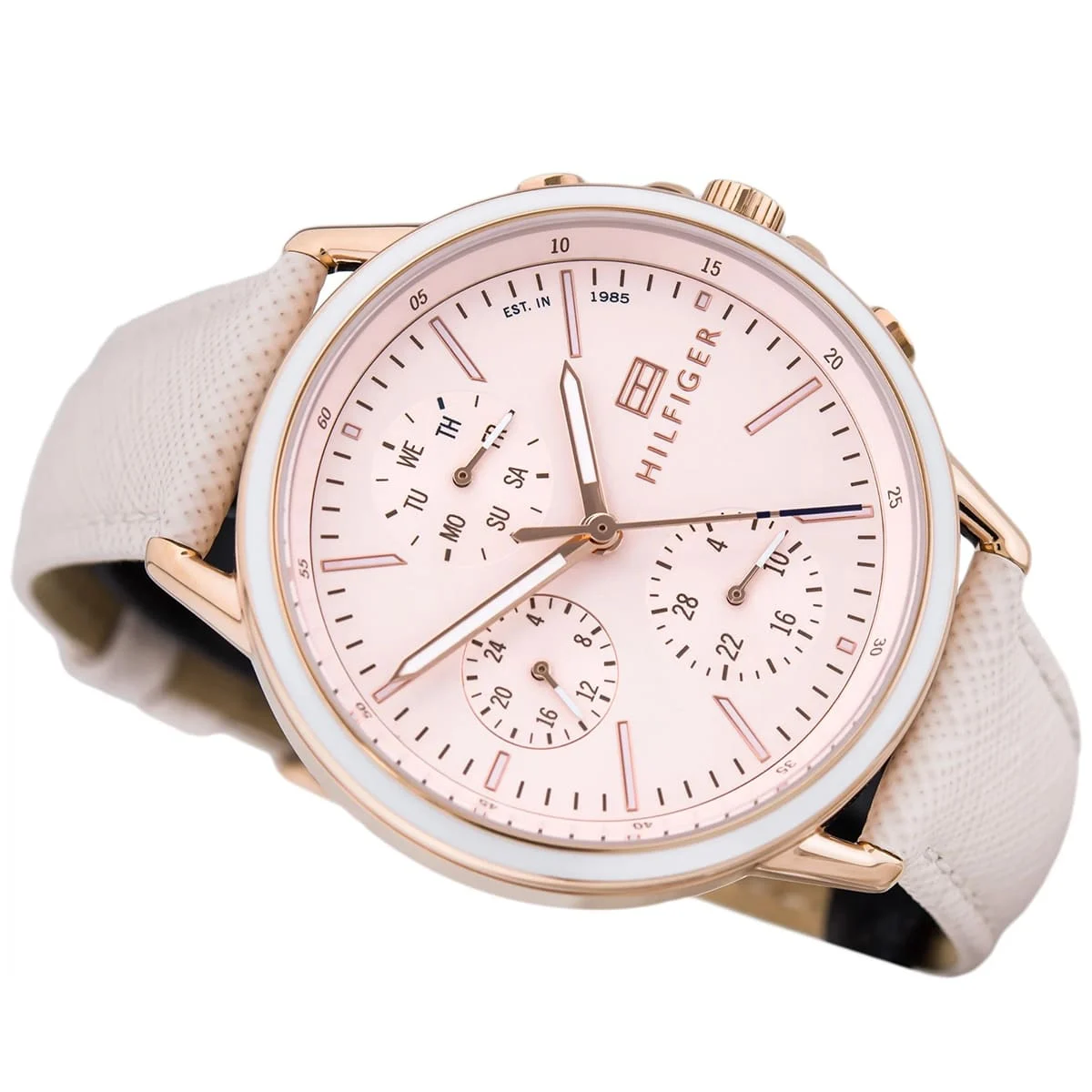 ساعة تومي هيلفيغر  للنساء أصلية موديل  لون وردي و استيك جلد طبيعي لون وردي.