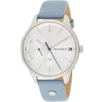 ساعة تومي هيلفيغر للنساء اصلية موديل  لون فضي واستيك جلد طبيعي لون ازرق.