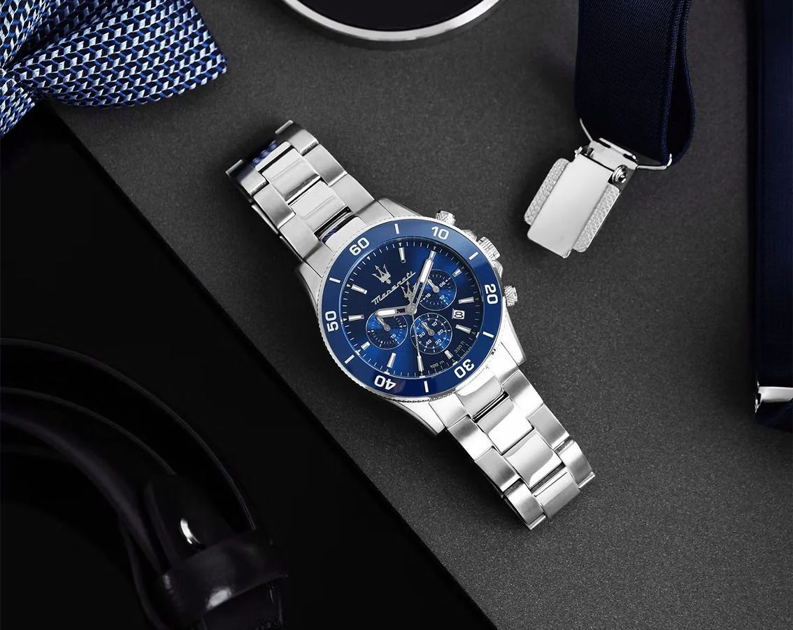 ساعة مازيراتي للرجال أصلية موديل R8873600002 لون ازرق و استيك معدن ستانلس ستيل لون فضي.
