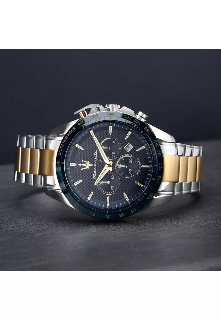 ساعة مازيراتي للرجال أصلية موديل R8873612046لون ازرق و استيك معدن ستانلس ستيل لون فضي * ذهبي.
