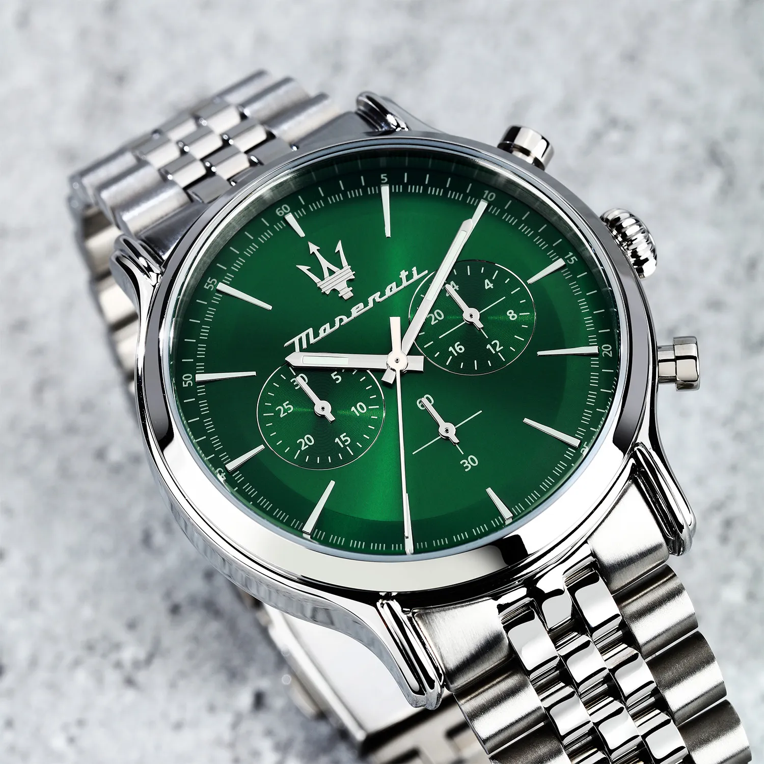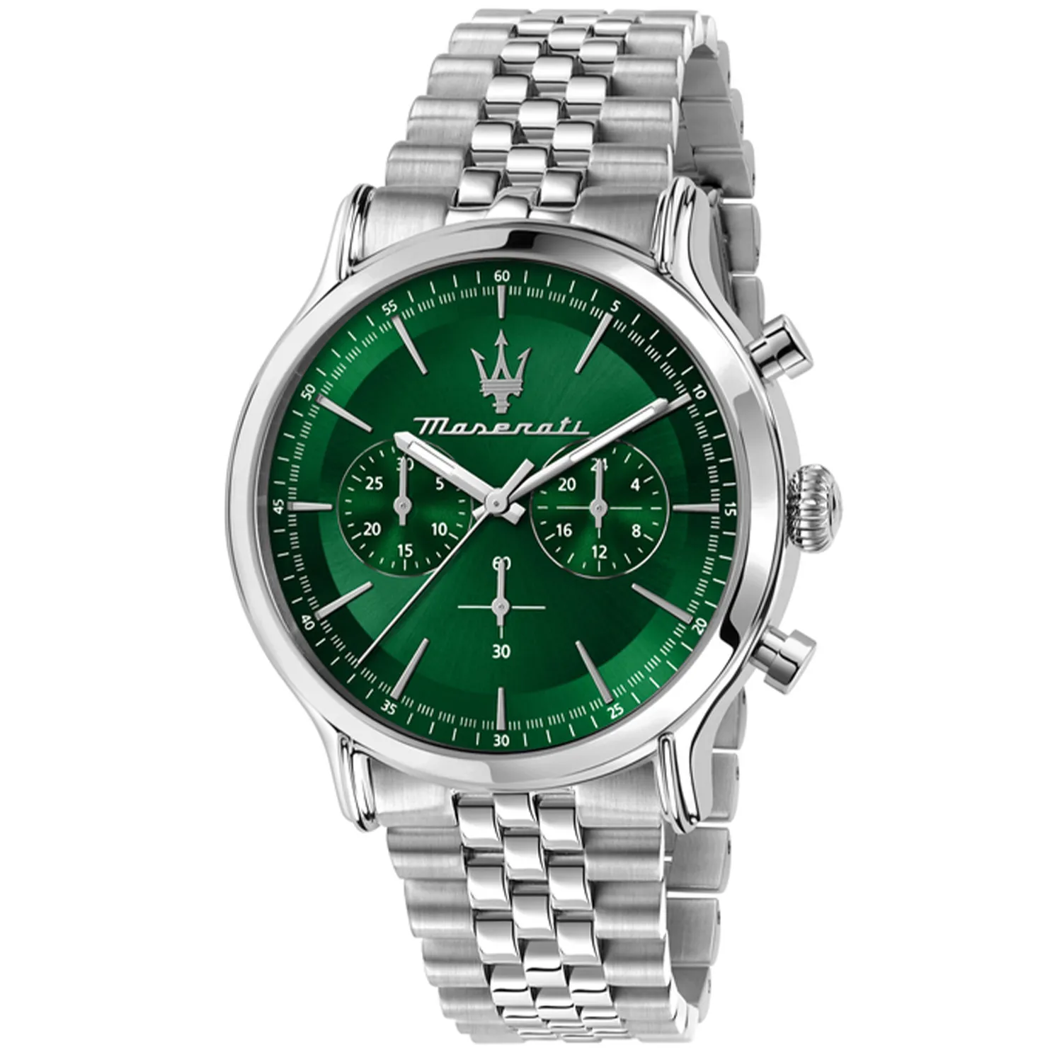 ساعة مازيراتي للرجال أصلية موديل لون اخضر و استيك معدن ستانلس لون فضي.