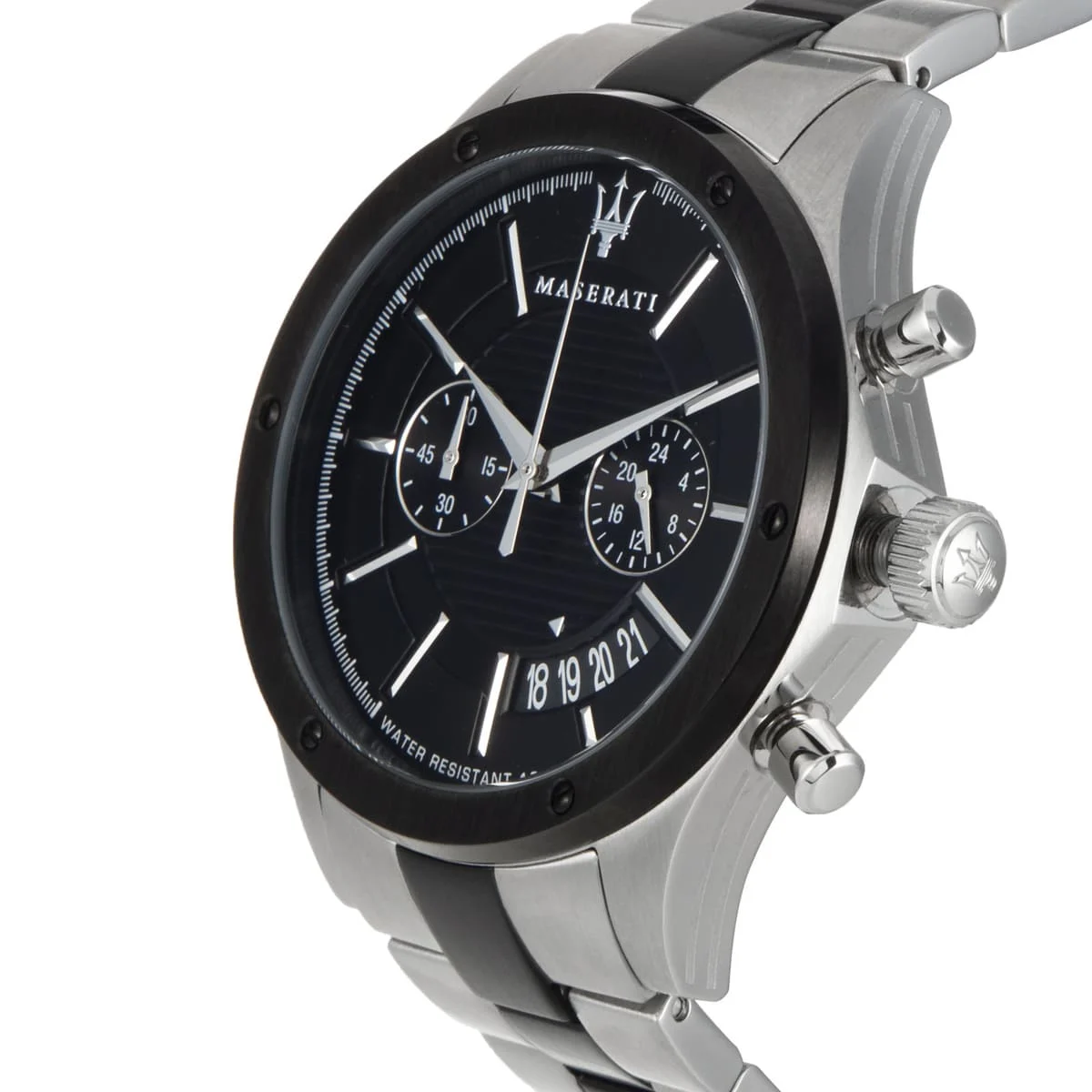 ساعة مازيراتي للرجال أصلية موديل R8873627003 بلون اسود و استيك معدن ستانلس ستيل بلون فضي * اسود.