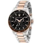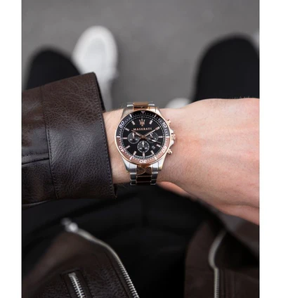 ساعة مازيراتي للرجال أصلية موديل R8873640010بلون اسود و استيك معدن بلون فضي * روز جولد.