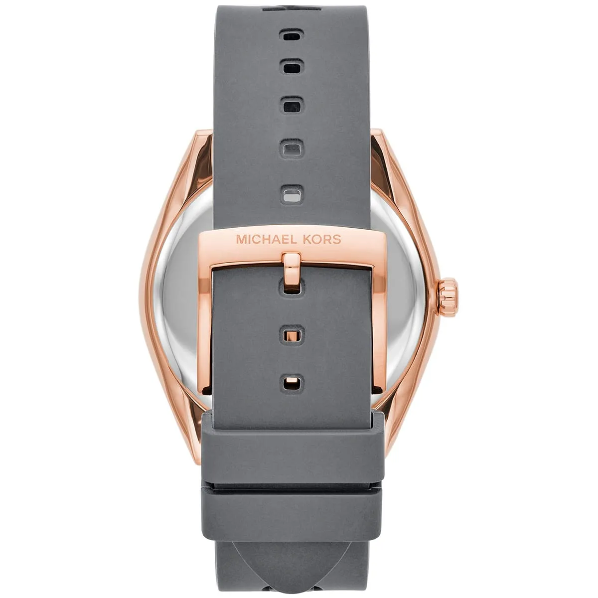 mk7314 michael kors watch women mk logo gray dial rubber grey strap quartz battery analog three hand janelle 4