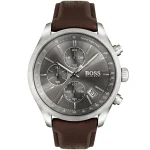 1513476 hugo boss watch men gray dial leather brown strap quartz analog chronograph grand prix 1