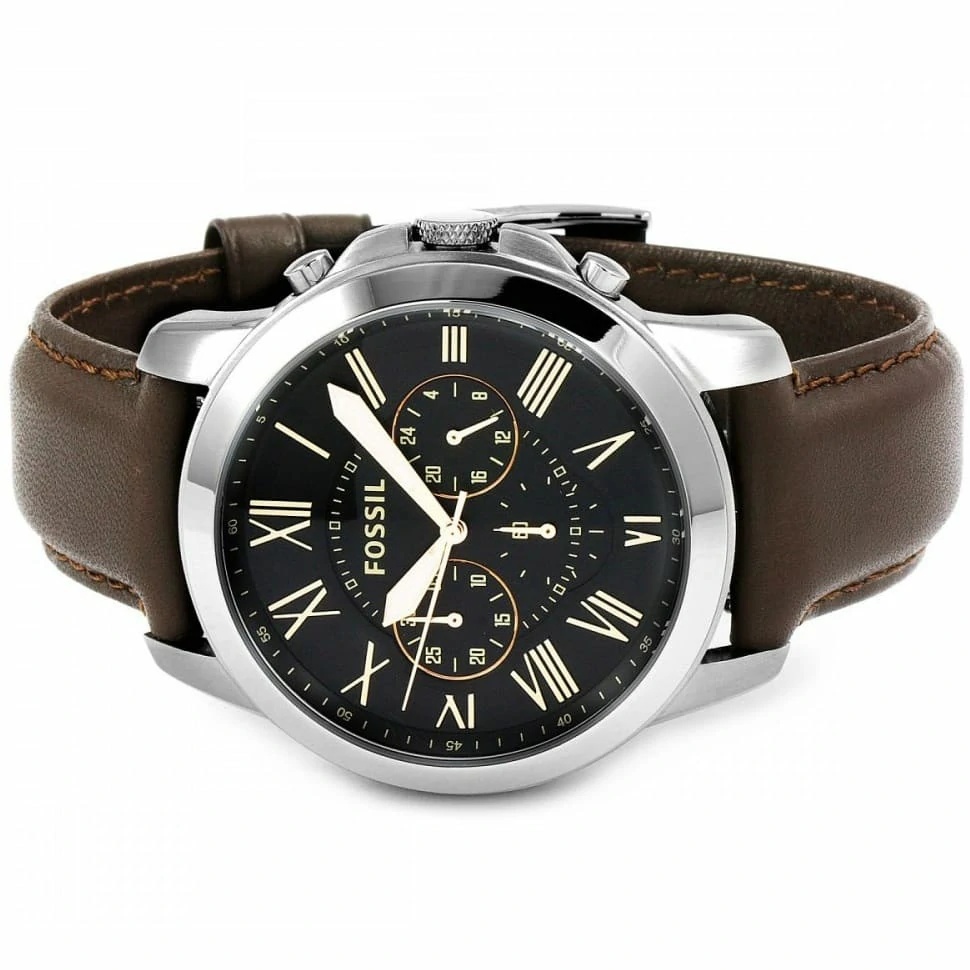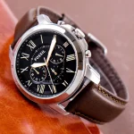 ساعة فوسيل للرجال اصلية موديل FS4813 لون اسود واستيك جلد طبيعي لون بني.