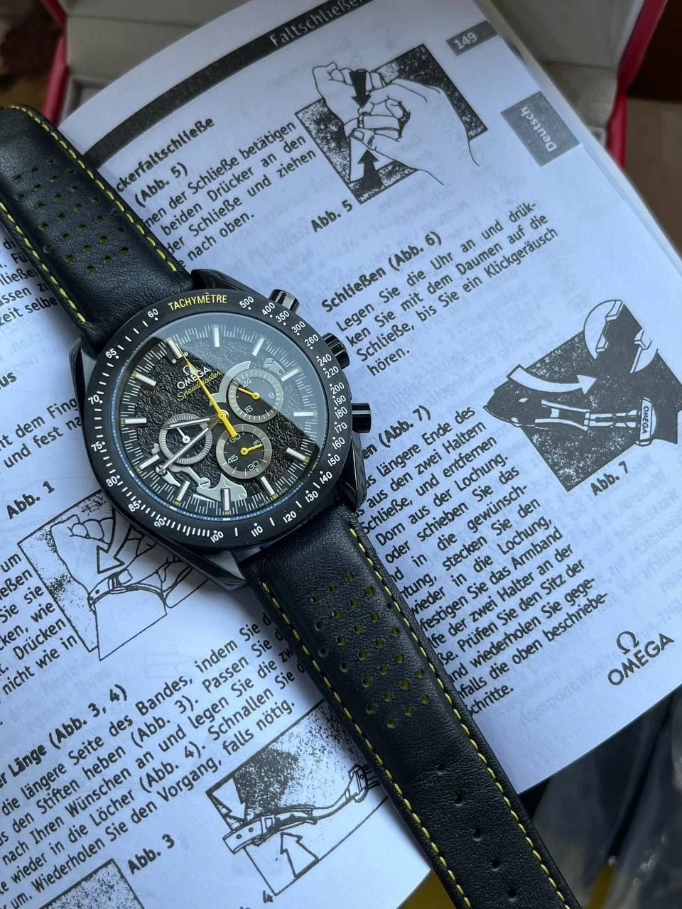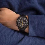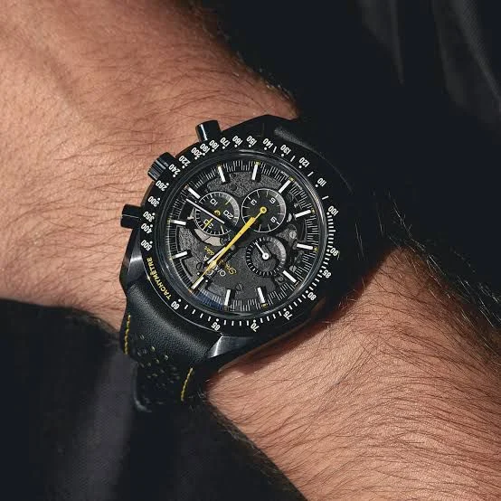 ساعه من OMEGA 007 تعمل بعدادات بلون اسود وسير جلد اسود