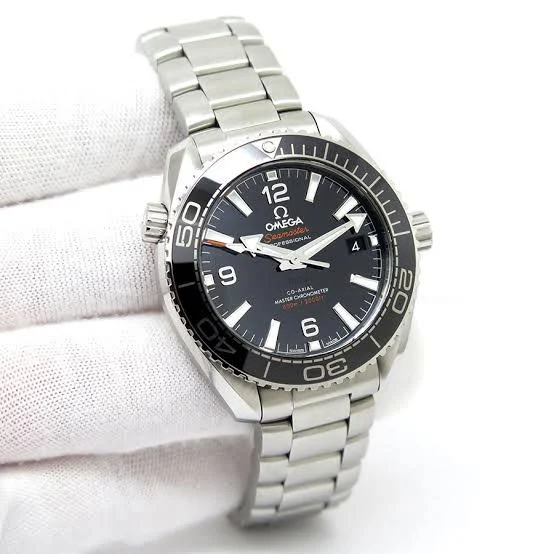 ساعه من007 OMEGA بلون مينا اسود وسير فضي من الستانليس ستيل