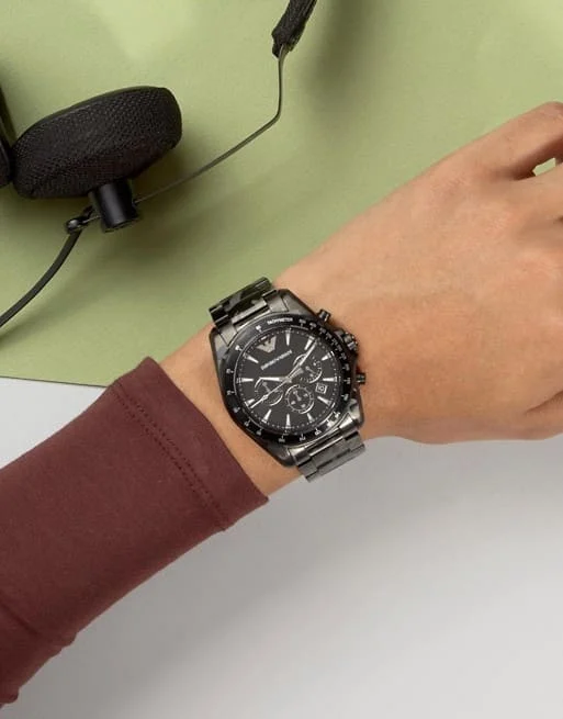ساعة امبوريو ارماني للرجال اصلية موديل Sigma AR11027 لون اسود واستيك معدن ستانلس لون اسود.