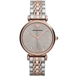ساعة امبوريو ارماني للنساء اصلية موديل Gianni T-Bar AR1840 لون رمادي واستيك معدن ستانلس لون فضي * روز جولد.