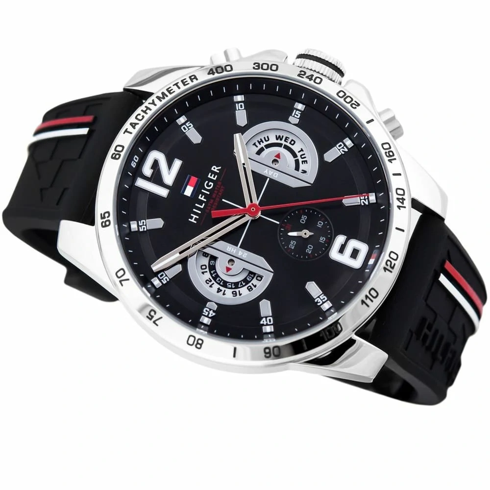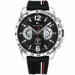 ساعة تومي هيلفيغر للرجال اصلية موديل (ديكر) Decker 1791473 لون اسود واستيك سيليكون مطاط لون اسود.