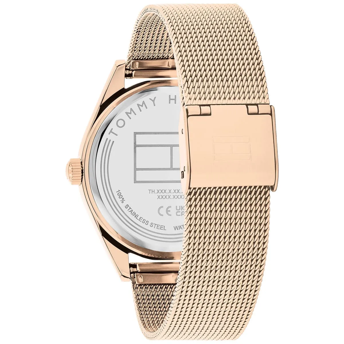 1782715 tommy hilfiger watch women skeleton rose gold dial metal stainless steel rose golden mesh strap quartz analog monica