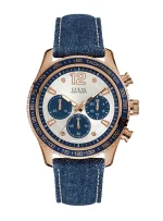 ساعة جيس للرجال اصلية موديل (فليت) Fleet W0970G3 بلون ابيض واستيك قماش جينز بلون ازرق