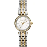 mk3323 michael kors watch women silver dial metal stainless steel gold two tone strap quartz battery analog three hand darci petite 3