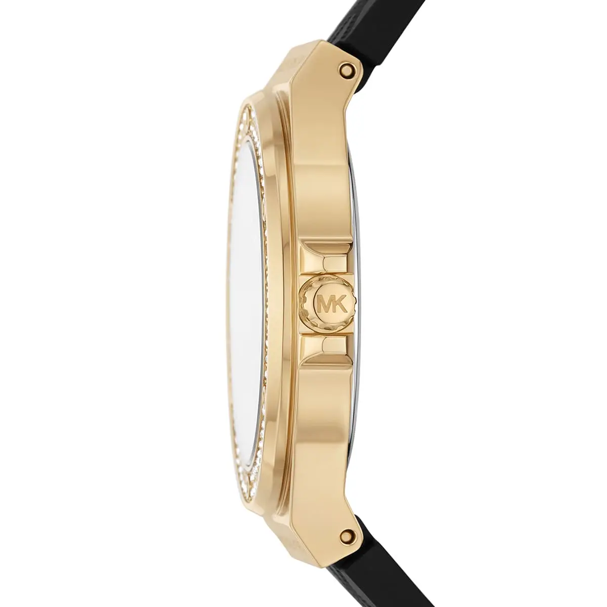 mk7281 michael kors watch women black dial rubber strap quartz battery analog three hand crystals