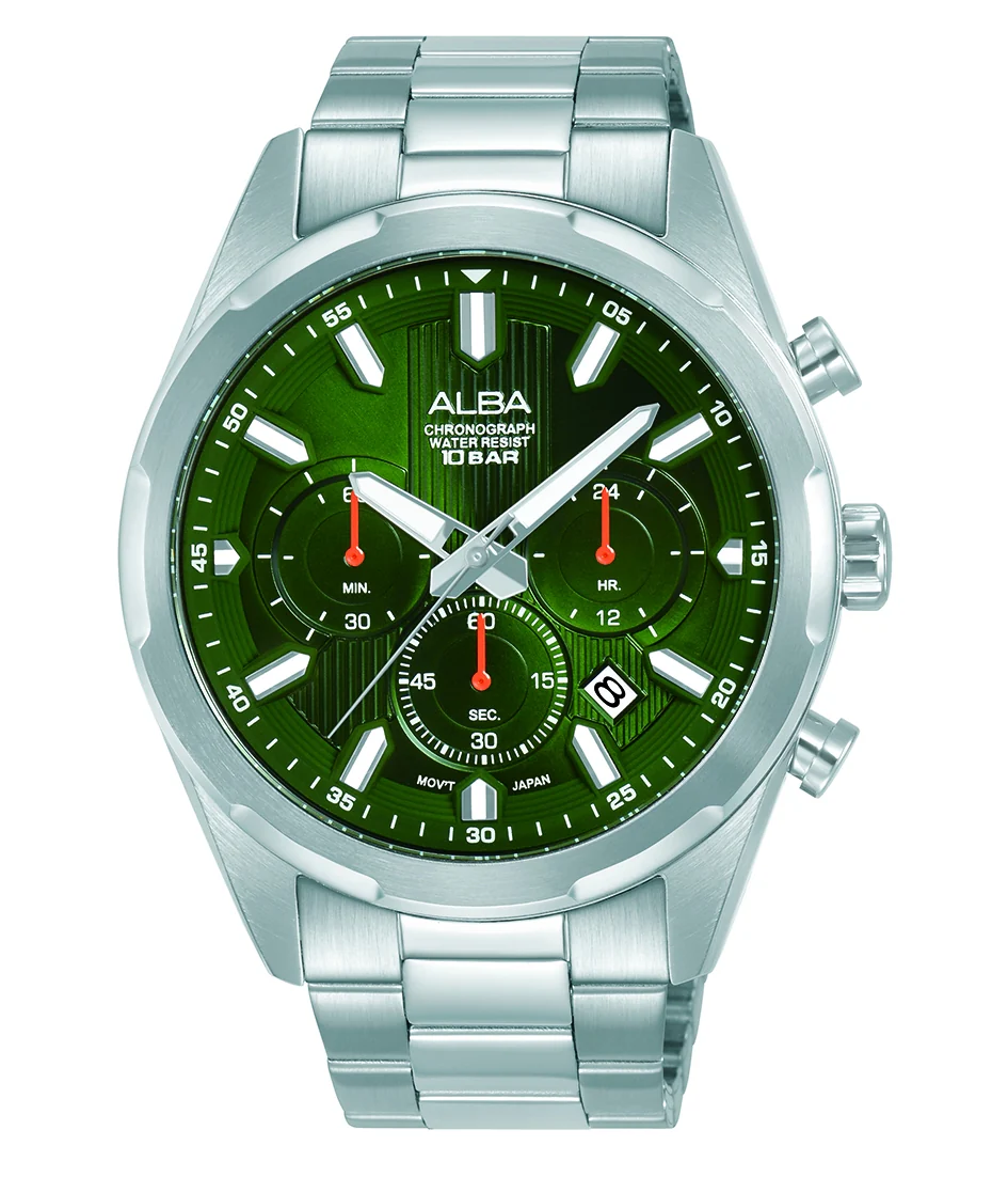 ساعة يد ألبا رجالي أكتيف سوار استانلس ستيل مينا لون أخضر AT3J89X1
