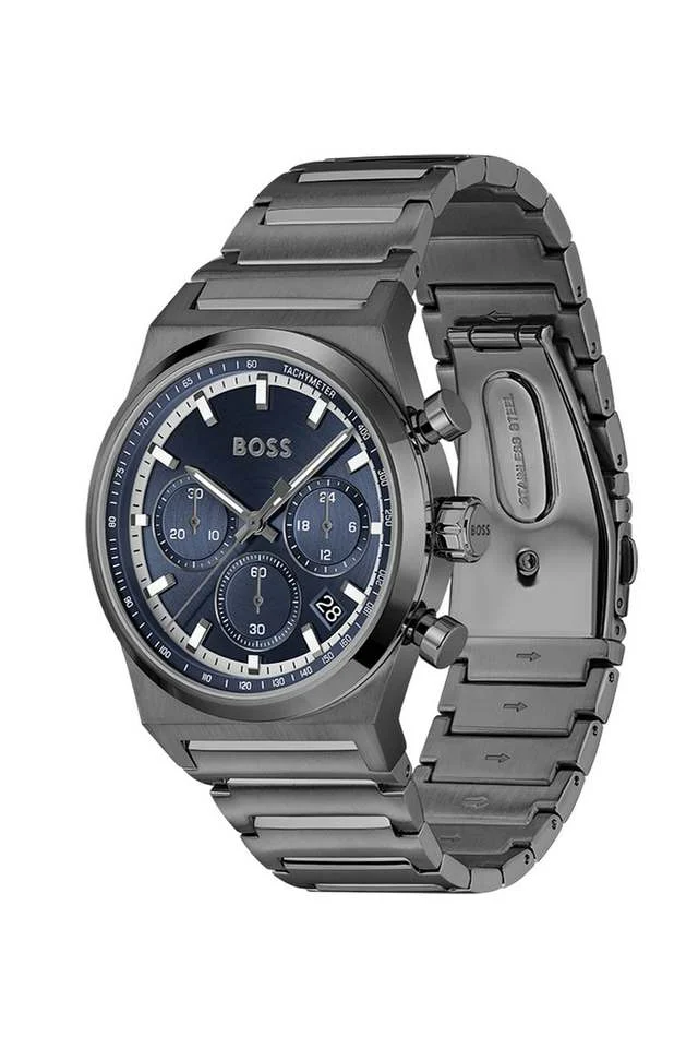 BOSS Candor Chrono Qtz Fashion Chrono Blue Round Dial Men’s Watch|Ionic Plated Grey Steel Material|Grey Color Band – 1514223