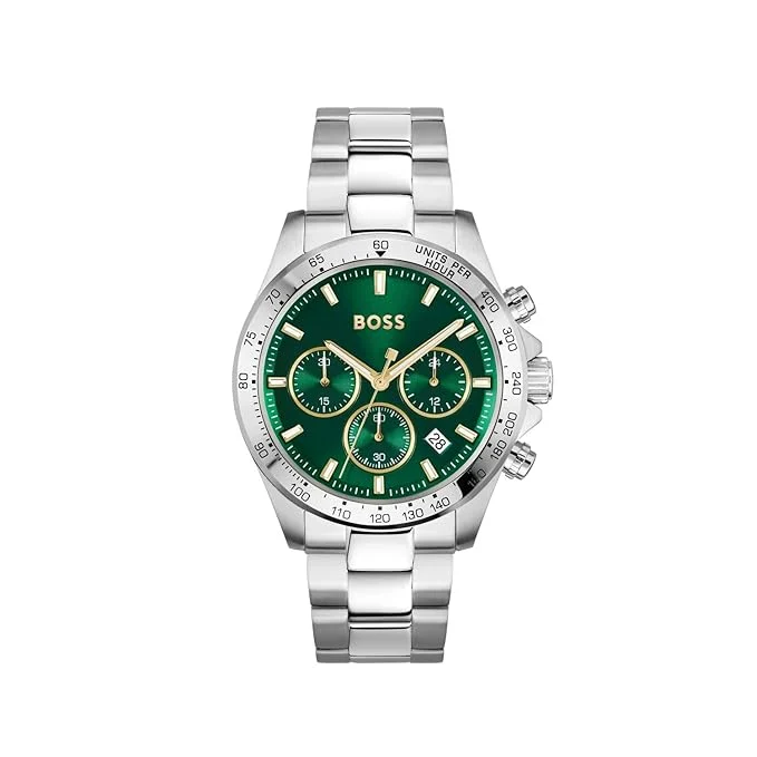 Home Watches for men BOSS Hero Qtm Qtz Fashion Chrono Green Round Dial Men’s Watch|Stainless Steel Material|Silver Color Band – 1514217