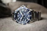 ar60059 emporio armani watch meccanico 100 meters men blue dial stainless steel metal silver strap automatic analog 14