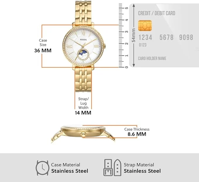 - Fossil Jacqueline Sun Moon Multifunction Gold-Tone Stainless Steel Watch