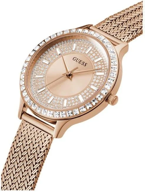 الرئيسية ساعات للسيدات GUESS Dress Watch for Women, Quartz Movement, Analog Display, Rose Gold Stainless Steel Strap-GW0402L3